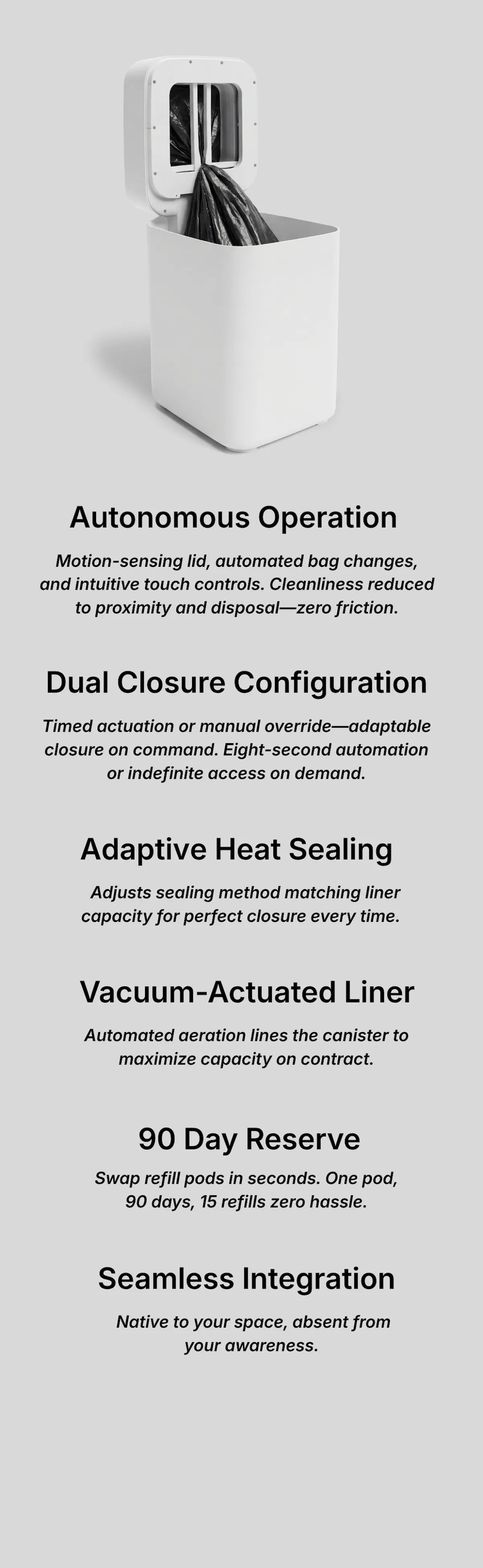 The exception: bag aeration. When installing a new bag, The Arvo draws it into the canister to eliminate air pockets and maximize capacity. This takes 2-3 seconds and sounds like a vacuum spooling up. Brief, but noticeably louder.