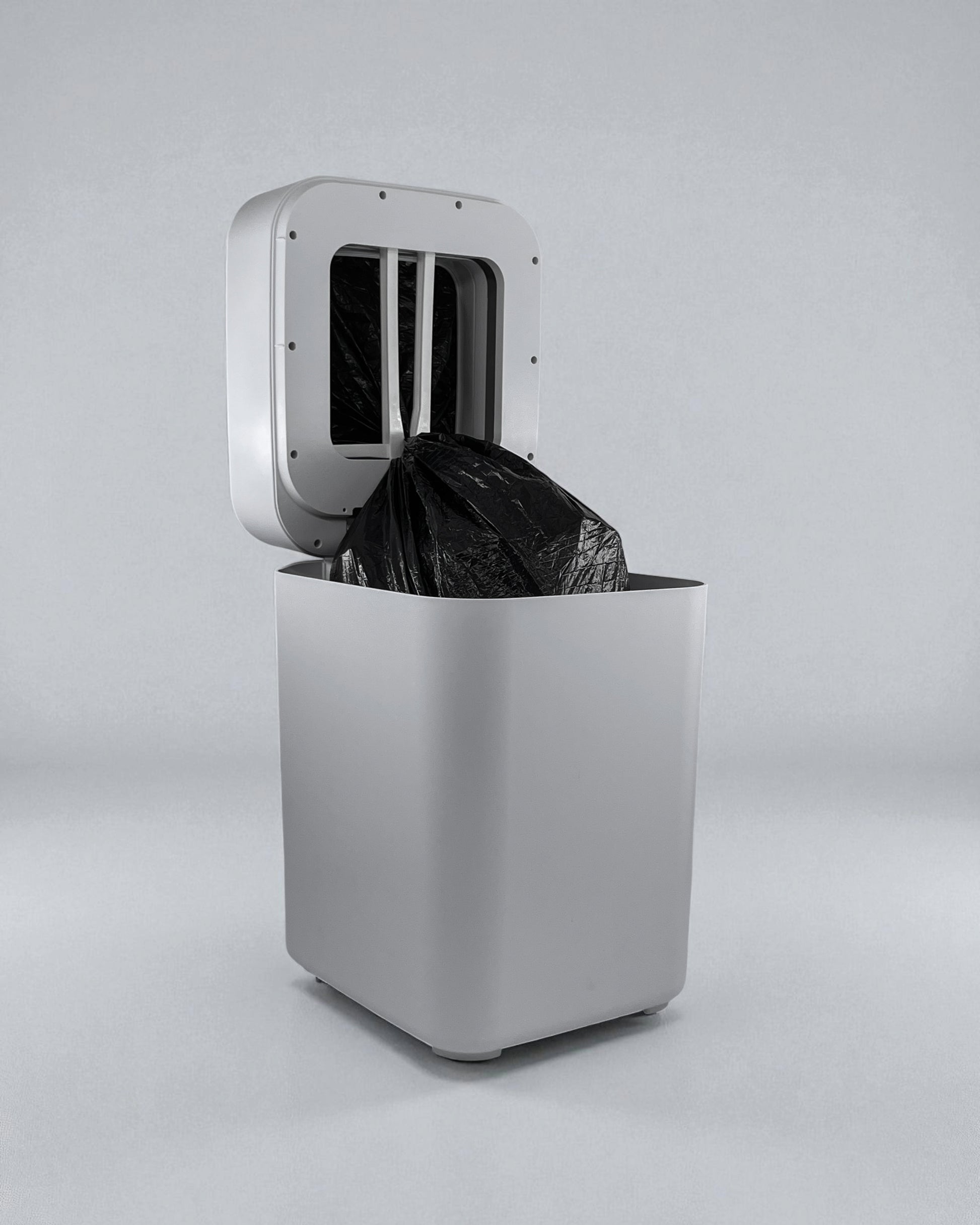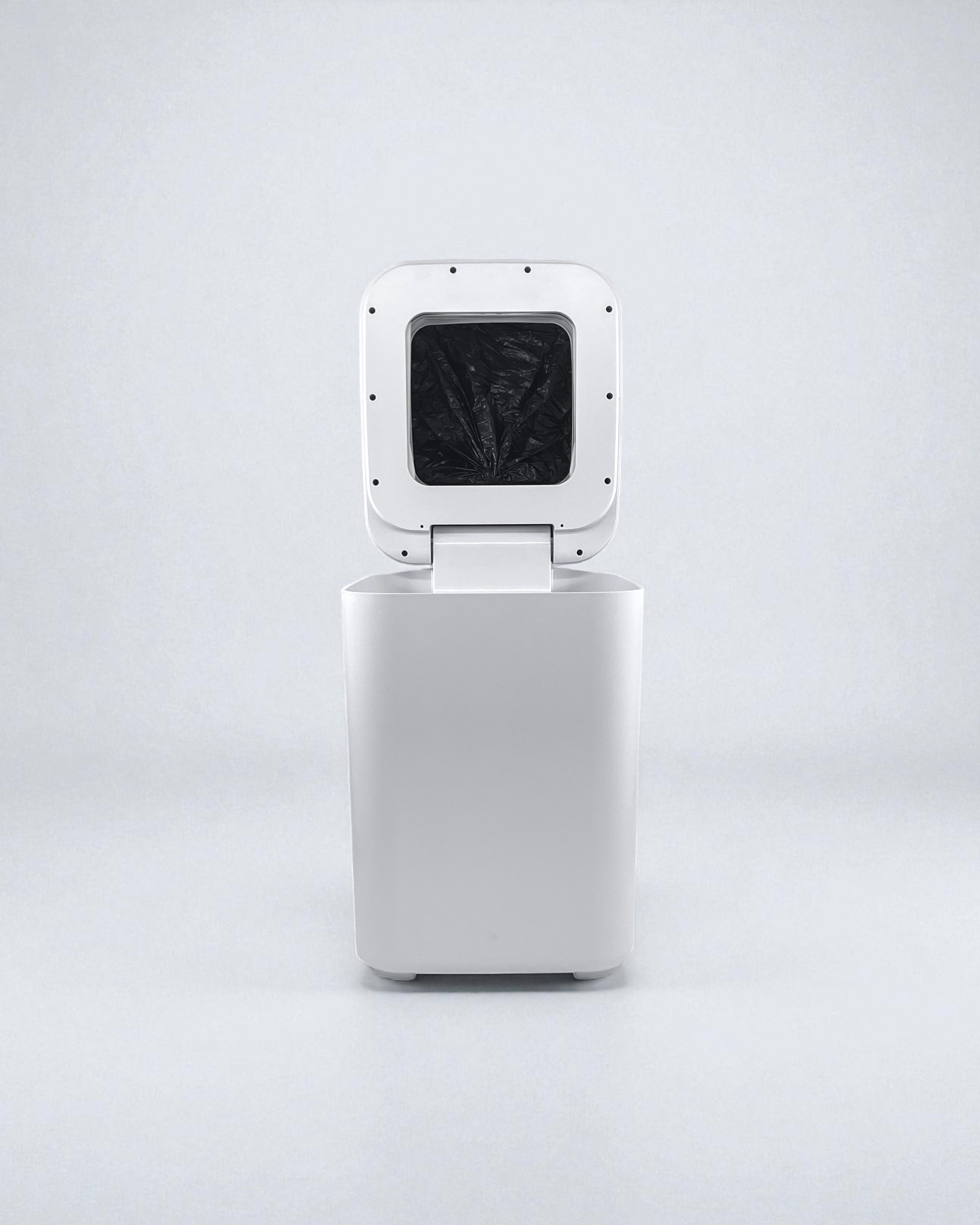 One tap on the circle = lid stays open | Two taps = aerates bag | Tap & hold = starts auto bag-change